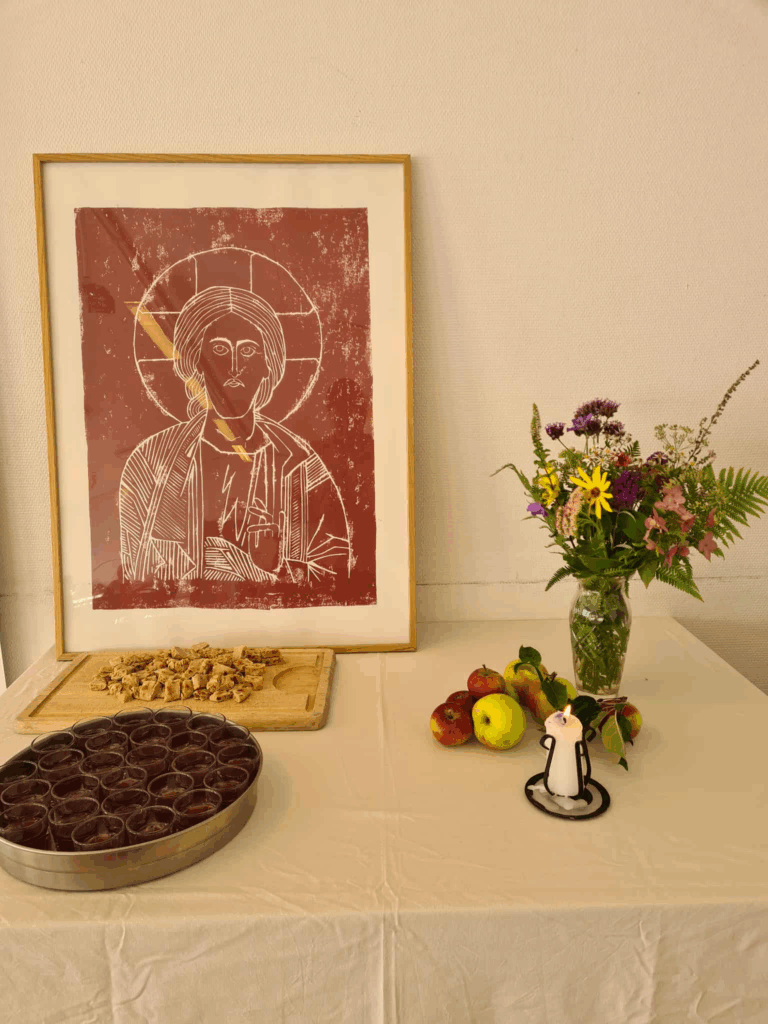 I den lille frikirke Helsingør Vineyard afholdtes der også en særlig gudstjeneste i anledningen af Skabelsens Dag. Her var der pyntet ekstra op med blomster og æbler for at trække naturen ind i fælleshuset, som kirken låner fast til deres gudstjenester.