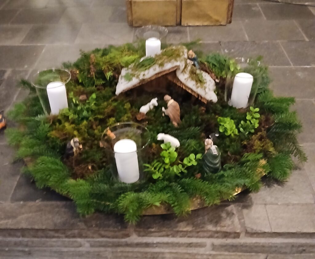 I den katolske kirke, Sakramentskirken, i København har denne fine adventskrans pyntet kirken i december måned og peget på julens budskab.