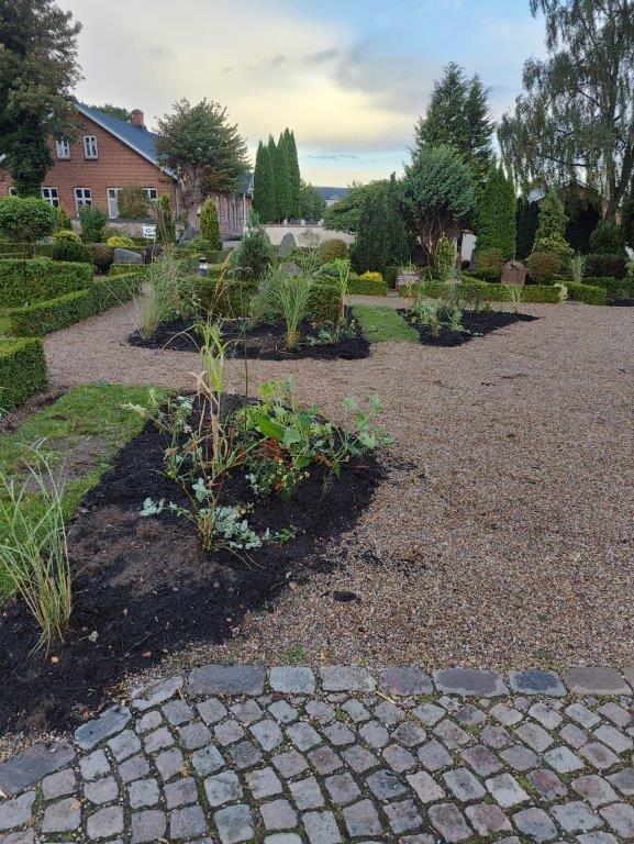 På Østbirk Kirkegård har man ligesom mange andre steder oplevet, at begravelsesformen har ændret sig og ikke kræver så meget plads, som det har været tilfældet før. Det betyder, at der nu er endnu mere plads til det grønne på kirkegården og de tomme gravpladser plantes nu til med fine stauder, som også kan bruges til udsmykning af kirken ved forskellige arrangementer og kirkelige handlinger.
